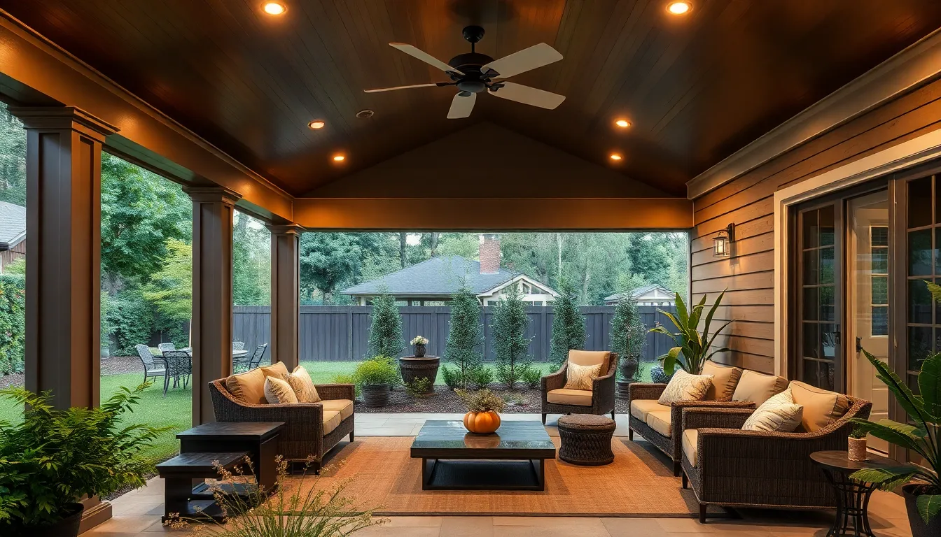 Modern covered outdoor living spaces feature design trends that enhance both functionality and aesthetics, reflecting a homeowner’s lifestyle.